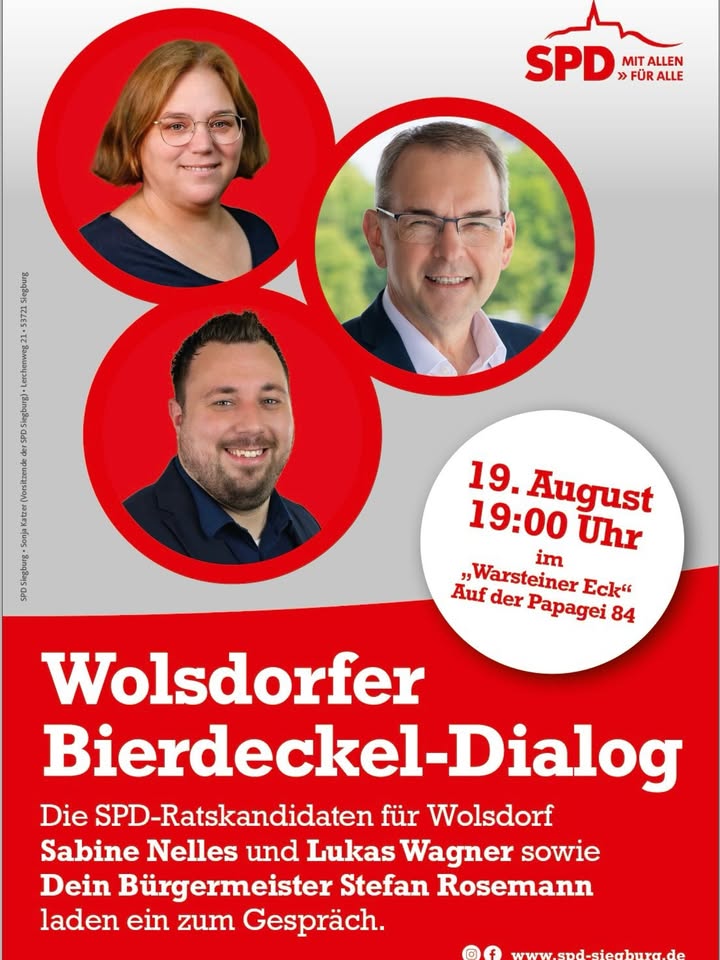 #Wolsdorf #BierdeckelDialog #SPD #StefanRosemann #SabineNelles #LukasWagner #kommunalwahl2025